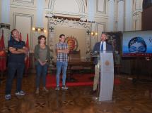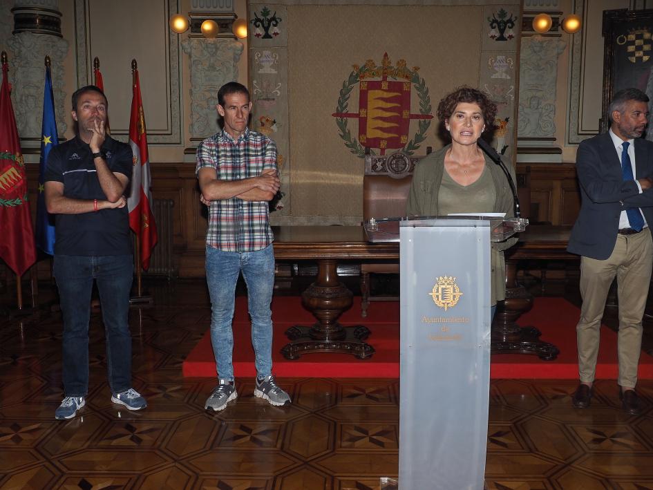 La presentación de los campeonatos organizados por la Federación Española de Triatlón FETRI, junto con la autonómica y la FMD, se celebró esta mañana en el Ayuntamiento de Valladolid, con la participación de la concejala de Deportes, Mayte Martínez; el coordinador de la Dirección General de Deportes, Luis Pujades; Jorge García, director de Competiciones de la Federación Española de Triatlón; y Amancio del Castillo, presidente de la Federación de Triatlón de Castilla y León.