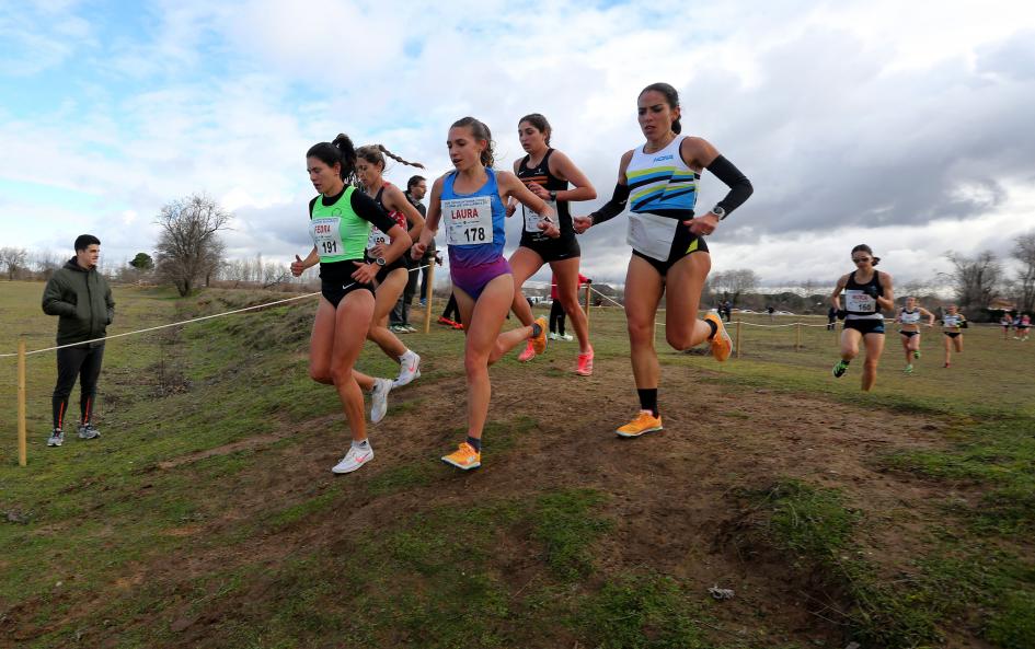 A las 12.20 horas se daba la salida a la prueba femenina donde la madrileña Laura Luengo (Running Pinto Seoane) se hizo con la primera posición marcando un registro de 27:28 en el recorrido de 8.000 metros. La carrera, que se inició fuerte en cuanto al ritmo con las favoritas en la cabeza, se fue rompiendo a medida que la argentina Fedra Aldana Luna, campeona argentina en 5.000, fue imponiendo más ritmo y descolgando rivales. Luna, corriendo con licencia de Soria, fue segunda con 27:32 y por tanto campeona de Castilla y León. Una nueva perla a las órdenes de Enrique Pascual Oliva. Tercera concluyó una Nuria Lugueros que nunca se rinde y demostró muy buena forma. El podio de Castilla y León se completó con Lidia Campo, bronce, que entró sexta corriendo por el Hoka. Por equipos absoluto, primero fue Vicky Foods, seguido de FDR y de At. Benavente.