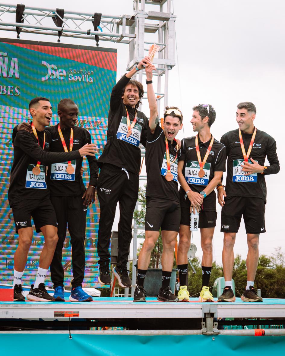 Víctor Alonso, Director del Vicky Foods Athletics, también acompañaba a los diferentes equipos en su paso por ‘las ruinas de Itálica’ y se mostraba muy orgulloso de lo conseguido en esta recta final de 2024: “Este era un objetivo muy claro que nos marcamos a comienzos de temporada y éramos plenamente conscientes de la dificultad de estar en el podio, pero nuestros atletas han venido trabajando muy duro estas últimas semanas y estos resultados no son otra cosa que el desencadenante de todo ello”.