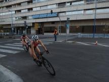 Las primeras mujeres que salían del agua eran Marina Muñoz y Esther Gómez, entre ellas colaboraron para bajarse de la bici con bastante ventaja- De boxes, Marina en cabeza e impuso un severo ritmo corriendo que la a lo más alto del podio. Esther Gómez era segunda y