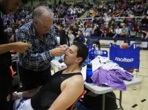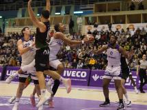 Retirado al banquillo con la camiseta ensangrentada, Sergio de la Fuente presentaba una herida que incluso le hizo cambiar de equipación, pero el equipo, mientras tanto, continuó con su reacción sobre el parqué. Tarde, pero había despertado el UEMC Real Valladolid Baloncesto, a tiempo para llegar al último asalto por delante (45-44). El acierto marcaba la diferencia con lo visto en el primer tiempo.