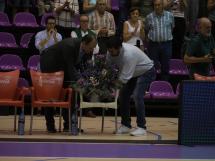 En el día más aciago de la historia del Real Valladolid Baloncesto, el UEMC Real Valladolid Baloncesto no pudo brindarle el mejor de los homenajes al alma de la entidad: DON Teo Hernández. Fallecido este mismo viernes, su figura fue recordada por Pisuerga con la colocación de un centro de flores en el banquillo local, en su puesto de comandante de pista, y con una sentida y merecida ovación.