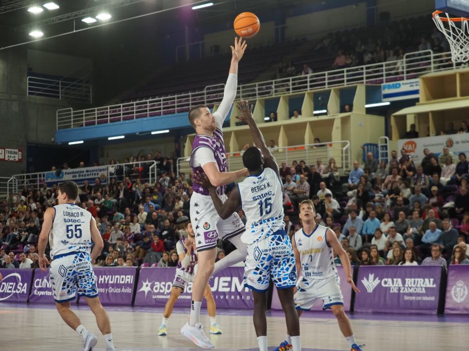 Se resiste la primera en liga para el UEMC Real Valladolid Baloncesto. El cuadro de Lolo Encinas cedió ante un Alimerka Oviedo (78-82) aguerrido, que sobrevivió con puntería a un buen primer periodo blanquivioleta, y que desde entonces impuso su ritmo, tono físico, defensivo y mayor acierto anotador y en el rebote para decidir en los minutos finales. Los vallisoletanos, mermados y con una rotación de solo 10 hombres, continúan sin rematar la faena en Pisuerga y viajarán a Menorca el próximo fin de semana antes del parón por las Ventanas FIBA.