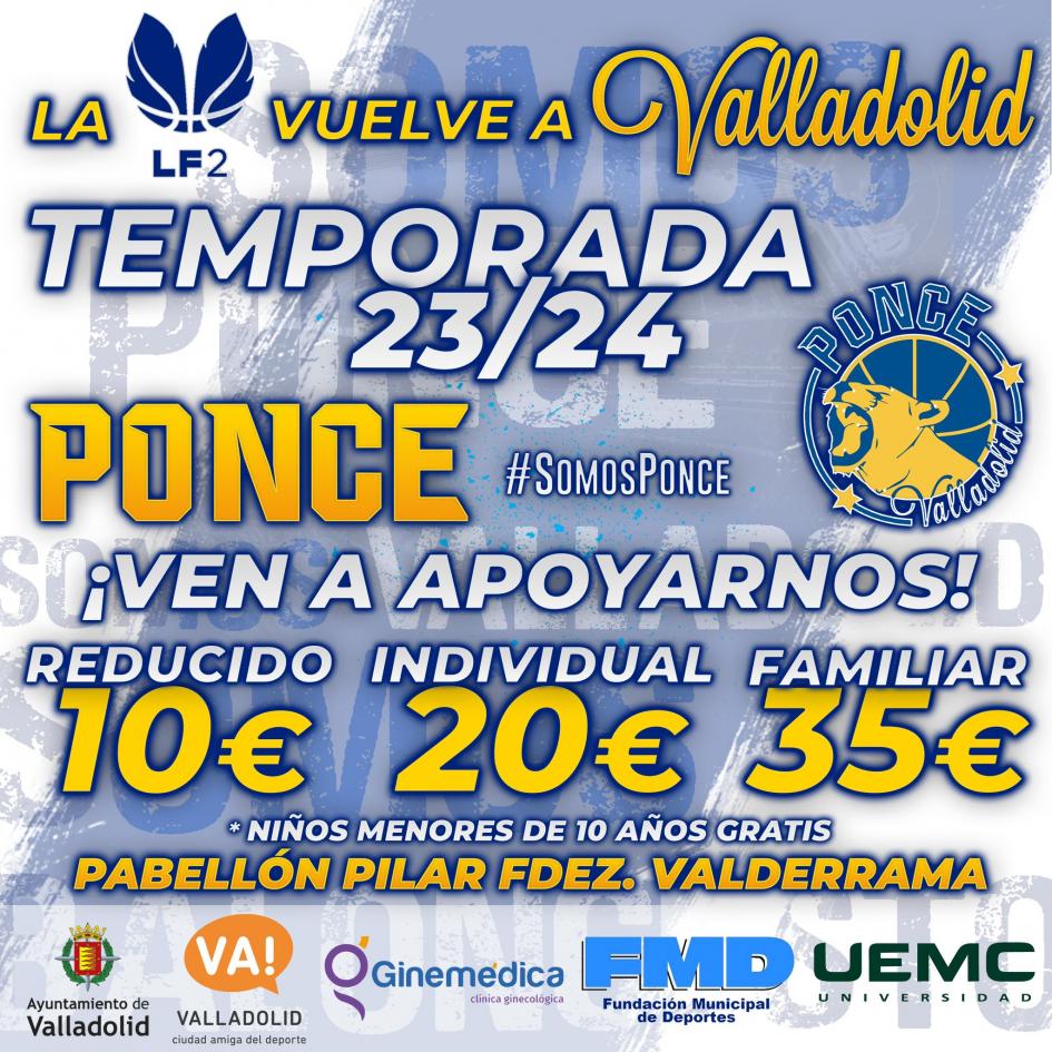 En este proyecto basado en la cantera, es indispensable también el apoyo de la ciudadanía y el público, por ello Ponce Valladolid CB ha impulsado está campaña de abonados con el objetivo de llenar el Polideportivo Pilar Fernández Valderrama.