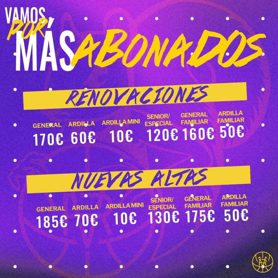 El abono de la temporada 2023/2024 incluye los partidos de playoffs que pueda disputar el UEMC Real Valladolid Baloncesto, en caso de clasificarse para ellos. Las renovaciones serán aplicables a los aficionados del curso 2022/2023.