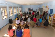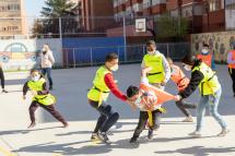 En el turno de preguntas, uno de los niños preguntaba a los participantes por las diferencias entre el fútbol americano y el rugby, dos modalidades que tienen menos en común de lo que a priori se puede suponer. Después todos salían al patio, donde brillaba el sol, para practicar el deporte, con auténticos expertos en la materia, que les iniciaron en el deporte con varios juegos de pases, donde comprobaron in situ que el oval no se parece a los balones de otras disciplinas.