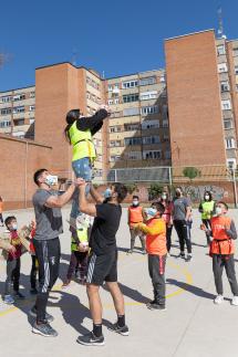 Para acabar disputaban un simulacro de partido ocho contra ocho en un campo improvisado, con presencia de algunas de las profesoras, introduciendo algunas novedades al estilo del ‘juego del pañuelo’ para que fuera más dinámico. Ambos conjuntos lograron varios ensayos en esta actividad, antes de que la guinda la pusieran unos saques de touch, aupando tanto Nacho Martínez como Fede Ehgartner a los pequeños, que disfrutaron de una jugada clásica de este deporte.