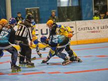 Las expulsiones siempre son clave y más en estos duelos, más cortos de tiempo (20 minutos en vez de 25 por periodo). Y la primera la sufrió el cuadro pucelano. Iker Carranza se multiplicó para evitar el primero. Y nada más superar los dos minutos con uno menos, Dani Díez rozó en una contra el gol. El disco dio en los dos palos e hizo el alambre en la línea. Hubo que pedir el vídeo arbitraje (primera vez que se implanta en el hockey línea) para comprobar que no había sido gol.