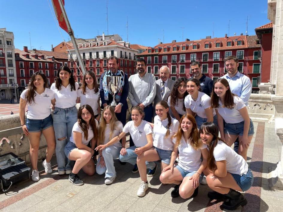 Posteriormente, la comitiva se ha desplazado al Palacio de Pimentel, donde ha sido recibida por el presidente de la Diputación, Conrado Íscar, y varios miembros de la institución provincial, y donde también ha recibido las felicitaciones por la consecución de la Liga Elite Iberdrola.