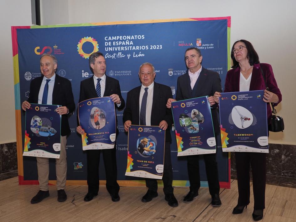 La Comunidad de Castilla y León alberga hasta el 3 de junio las pruebas en 24 de las 29 modalidades deportivas de los Campeonatos de España Universitarios 2023, en los que participarán 5.500 personas de 75 universidades. El consejero de Cultura, Turismo y Deporte, Gonzalo Santonja, acompañado por el presidente del Consejo Superior de Deportes, José Manuel Franco; el rector de la Universidad de Valladolid, Antonio Largo; y el director general de Deportes, Enrique Sánchez-Guijo, presentaron hoy en el Monasterio de Nuestra Señora de Prado, una cita en la que participarán universidades públicas y privadas de toda la Comunidad.