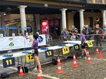 A continuación, la prueba se ha desplazado a la Plaza Mayor tordesillana donde todo había quedado dispuesto para disputar el láser-run. Sin embargo, una inoportuna y persistente lluvia ha obligado a retrasar la competición a la espera de que cesaran las precipitaciones y a acondicionar la zona de carrera para que no afectara al campeonato.