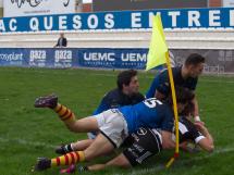 Sería con una jugada embarullada dentro de la 22 colegial como se volviese a mover el marcador, consiguiendo Lescano hacerse con el oval entre una maraña de jugadores, para conseguir encontrar el espacio necesario para entrar en la zona de marca, y poner el 0-10, con transformación de Rojas, con el que se llegaría al descanso.