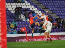 Un final cruel para una España valiente, disciplinada y eficaz, que dominó buena parte del partido y rozó una victoria de prestigio. Inglaterra A se llevó la victoria final demostrando la calidad y potencial que tiene como equipo.El Estadio José Zorrilla de Valladolid fue testigo de un drama digno del mejor rugby internacional. Bajo un ambiente frío y lluvioso, Los Leones ofrecieron una actuación memorable de valentía y disciplina, dominando gran parte del segundo de los choques de la ventana de noviembre, ante Inglaterra A. El equipo de Pablo Bouza construyó una cómoda ventaja de 19-7 al inicio de la segunda mitad gracias al acierto con el pie de Lucien Richardis y un ensayo clave del debutante Samu Ezeala. Sin embargo, en un final agónico, el XV de la Rosa A demostró su calidad al completar una épica remontada en los últimos minutos (25-29), dejando a España a las puertas de una histórica victoria de prestigio. La actuación de Richardis, que mantuvo a Los Leones por delante hasta el minuto 77, subraya la gran imagen y el potencial competitivo de la Selección.