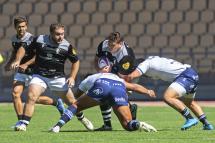 Se rehacían sin embargo los blanquinegros con la entrada de jugadores de refresco en la primera línea de la delantera, pasando a dominar la escena. Fruto de ello llegaba una jugada larga en la 22 científica que Munilla acababa consiguiendo un ensayo bajo palos tras sacar rápido un golpe de castigo con el que el medio de melé internacional recortaba hasta el 20-26.