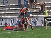El balón no circulaba con fluidez, ante el planteamiento defensivo de unos y otros, y, en las fases estáticas, se repartieron los fallos, sobre todo en las touch, mientras que las melés dieron más opciones a los blanquinegros, sin que tampoco pudieran obtener el rédito deseado.