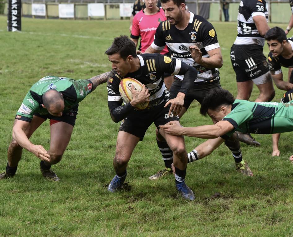 Katz volvería a acertar con el pie apenas 3 minutos después con otro lejano golpe de castigo, pero a falta de 5 minutos para el descanso un maul de Grupo Intxausti Gernika tras saque de lateral se internaba en las cercanías de la zona de marca blanquinegra, para el posado de De Bod que Olaeta confirmaba para el 17-6.