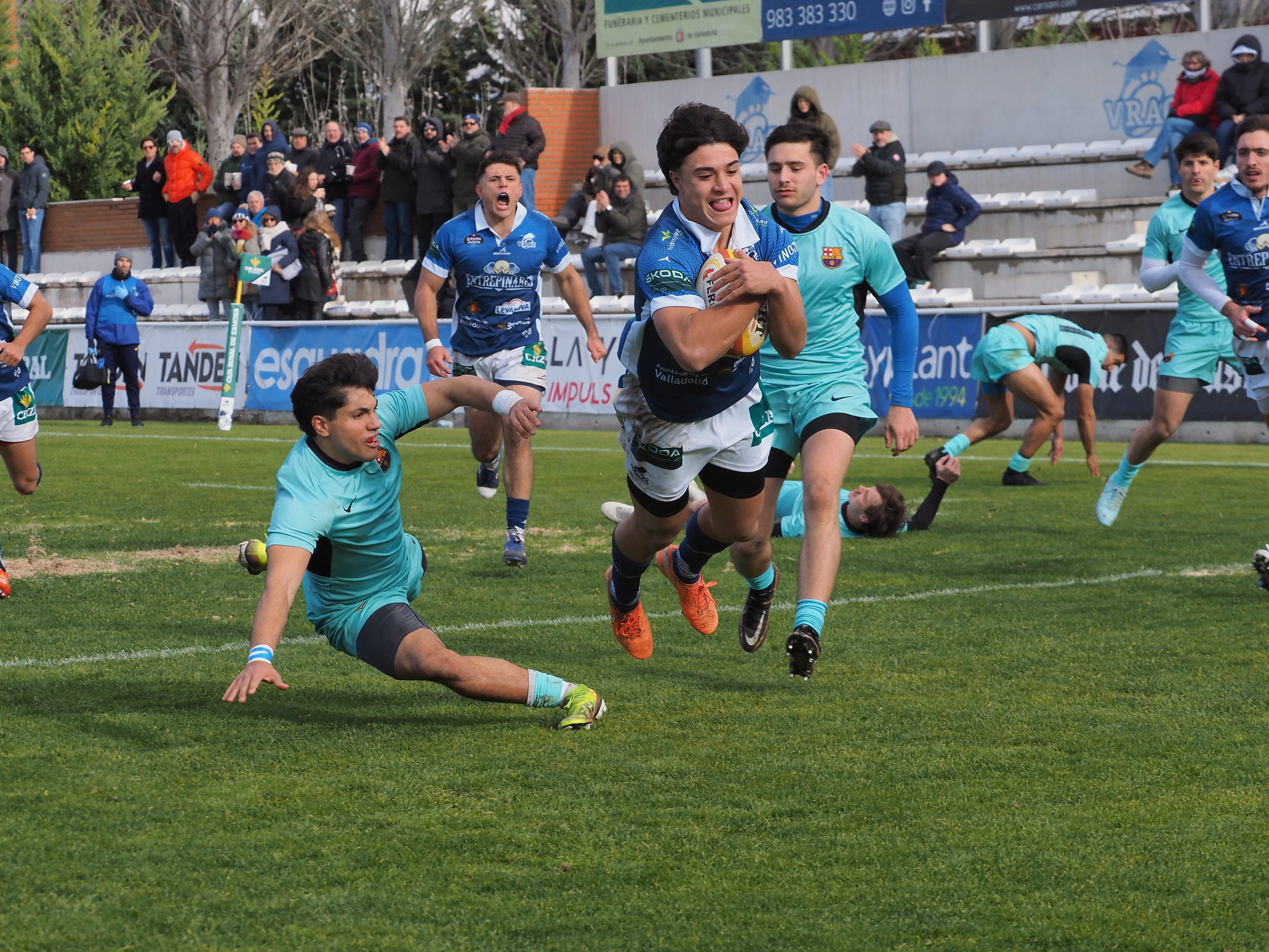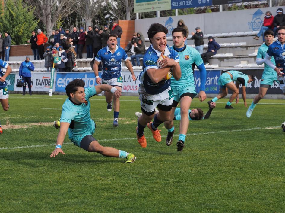 Pero el equipo azulón quería más y mantuvo la presión en el campo rival. Cuando los visitantes trataban de escabullirse, el VRAC robó el oval y fueron los pies de Pablo Mateos los que portaron el oval hasta la zona de marca contraria. Una demostración de agilidad y velocidad para que otro canterano quesero aumentara la ventaja en el minuto dieciséis.