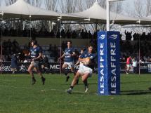 Parciales: 0-3, min. 4: Puntapié de castigo de Manawanui Williams, 3-3, min. 5: Puntapié de castigo de Greg Dyer; 10-3, min. 11: Ensayo de Ben Wood y transformación de Greg Dyer; 17-3, min. 15: Ensayo de Damián Huber y transformación de Greg Dyer; 20-3, min. 18: Puntapié de castigo de Greg Dyer; 27-3, min. 26: Ensayo de Tchumburidze y transformación de Greg Dyer; 34-3, min 29. Ensayo de Álex Alonso y transformación de Greg Dyer; 34-8, min. 33: Ensayo de Arnau Andrés; 39-8, min. 44: Ensayo de Mauro Perotti; 46-8, min. 65: Ensayo de Damián Huber y transformación de Javi López; 53-8, min. 71: Ensayo de Coque Ortiz y transformación de Javi López; 60-8, min. 75: Ensayo de Ewart Potgieter y transformación de Javi López.