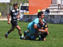 Pero no iba a dejar el equipo de Juan Carlos Pérez que su dominio durante el primer capítulo fuese estéril, y, con una gran jugada que avanzó por el centro hasta la 22 barcelonista, en la que el oval alcanzaba el ala derecha del ataque blanquinegro para que Du Plooy anotase una nueva marca que ponía el 19-10 con el que se alcanzaba el paso por los vestuarios.