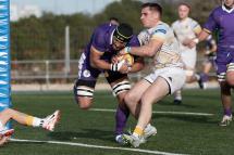 Con uno menos afrontaba los siguientes minutos el equipo colegial, por el sin bin que veía González, pero eso, lejos de afectar a los jugadores de Álvaro Gorostiza, pareció dar un nuevo impulso al equipo blanquinegro, que pasó a frenar la dominadora delantera madrileña y a asentarse con autoridad en campo rival.