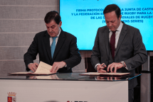 El presidente de la Junta de Castilla y León, Alfonso Fernández Mañueco, y el presidente de la Real Federación Española de Rugby, Juan Carlos Martín “Hansen”, han firmado hoy en Vallado-lid un protocolo de colaboración entre la Real Federación Española de Rugby y el Ejecutivo autonómico, para la celebración en Castilla y León de las finales del Circuito Mundial de Rugby 7, un evento deportivo de primer nivel internacional que reforzará la proyección exterior de la Comunidad y generará un importante impacto económico y turístico.