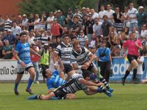 Antes del descanso, Pablo Riva lograba el primer ensayo del encuentro, tras un touch-maul, que dejaba el resultado en un apretado 9-11.