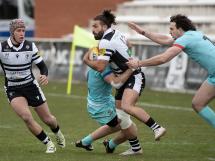 El conjunto colegial salió con más intensidad tras la reanudación, tratando de controlar más todas las facetas del juego, lo que se tradujo en un ensayo de Reuben Du Plooy, aprovechando la potencia de la delantera, que también pasó Santi Ortega entre los palos, subiendo al marcador el 21-7. Parecía que el duelo empezaba a estar dominado por los locales, pero la expulsión temporal de Brad Leuila fue perfectamente aprovechada por el conjunto blaugrana – aunque en este partido jugó de azul turquesa- para provocar, primero, un golpe de castigo, que transformó Santi Mansilla y, poco después, añadir otros siete puntos, desde el ala, que protagonizó Felipe Alegría.
