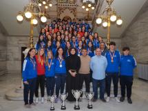 El salón de Recepciones del Ayuntamiento de Valladolid se quedó pequeño para el tributo que el Consistorio Municipal quiso tributar a los equipos que hicieron podio en la Copa de España de voleibol. Tres equipos infantiles de Valladolid Club Voleibol, junto con uno de los conjunto cadetes de CD San José, fueron recibidos por la concejala de Deporte y Juventud, Mayte Martínez. También estuvo presente el presidente de la Federación Regional, Jesús Soria, y el gerente de la Fundación Municipal de Deportes, Santi Hidalgo.